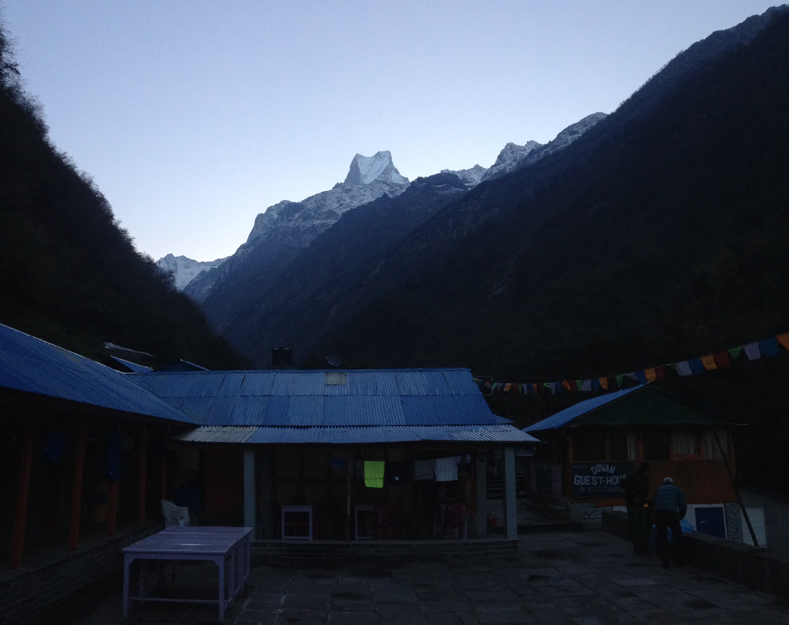 It is an amazing feeling to walk all day, to be completely exhausted, and then finally reach your destination. When we arrived it was late in the afternoon, we didn’t manage to see anything of the mountains surrounding us, that was fine, I think we were too exhausted to take anything else in. We were just happy that we didn’t get blown away by the wind, rained, snowed or hailed on. It was windy, cold and for a true South African, it was freaking cold! Again, all I can say, Razia, those chocolates of yours made it all the way up to ABC and were devoured with great gusto that afternoon! An early dinner, a good warm sleeping bag, and high altitude were on the cards that evening.