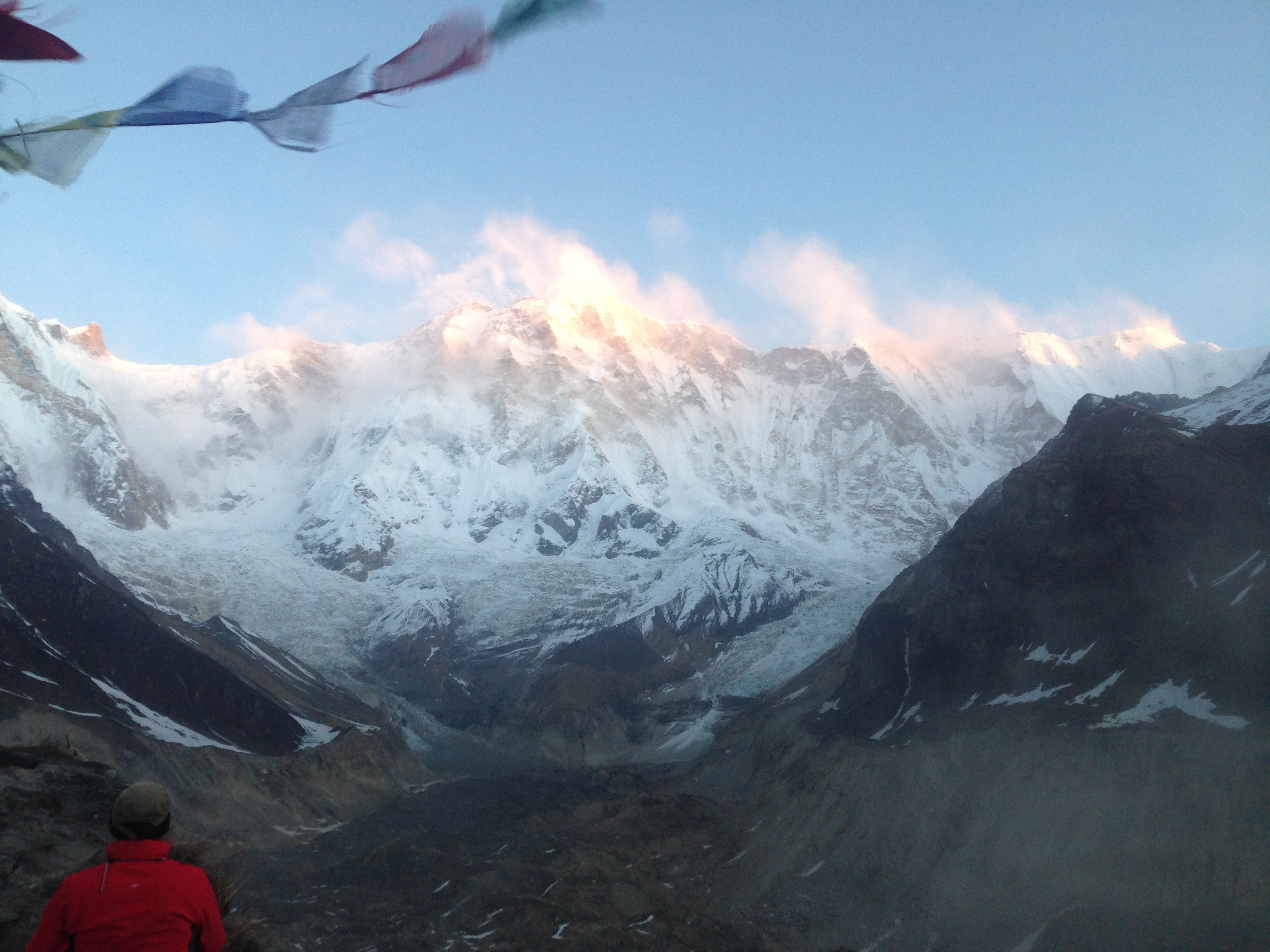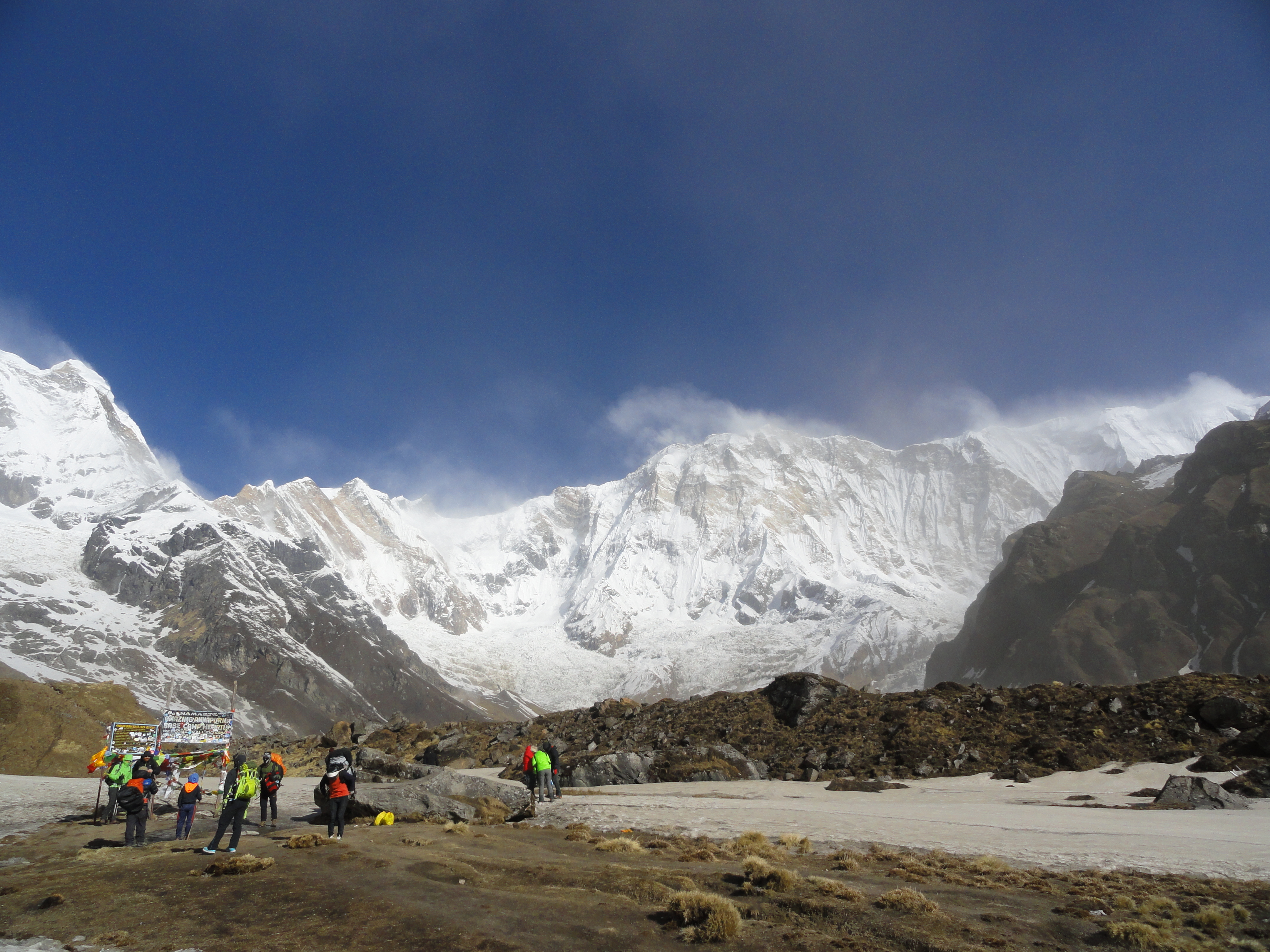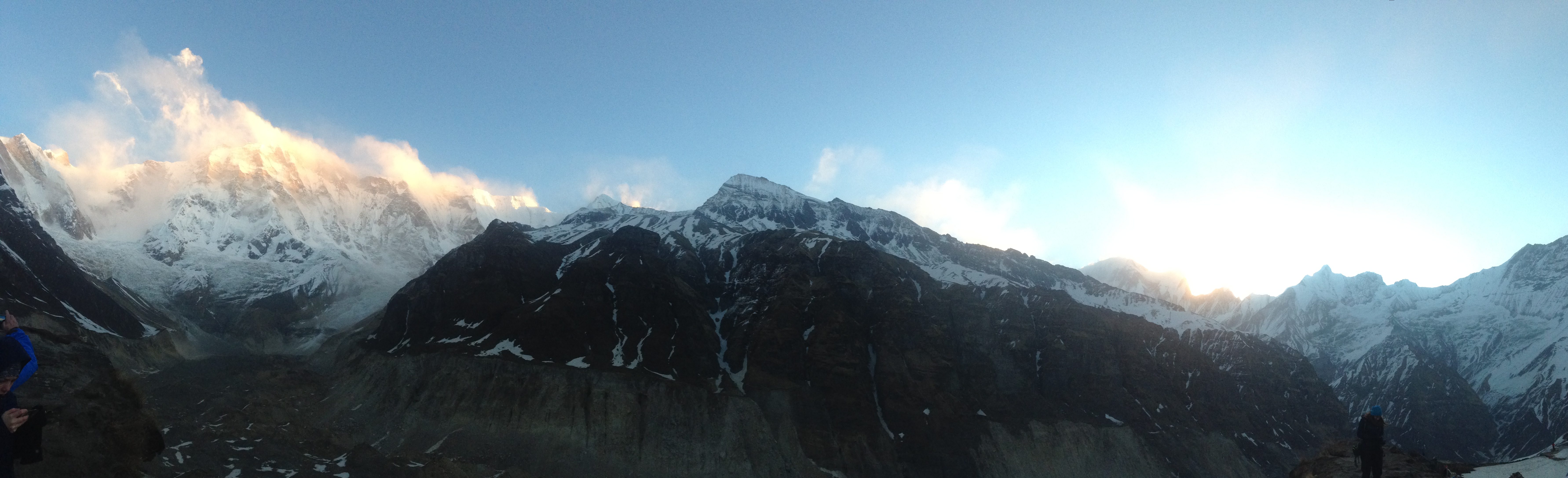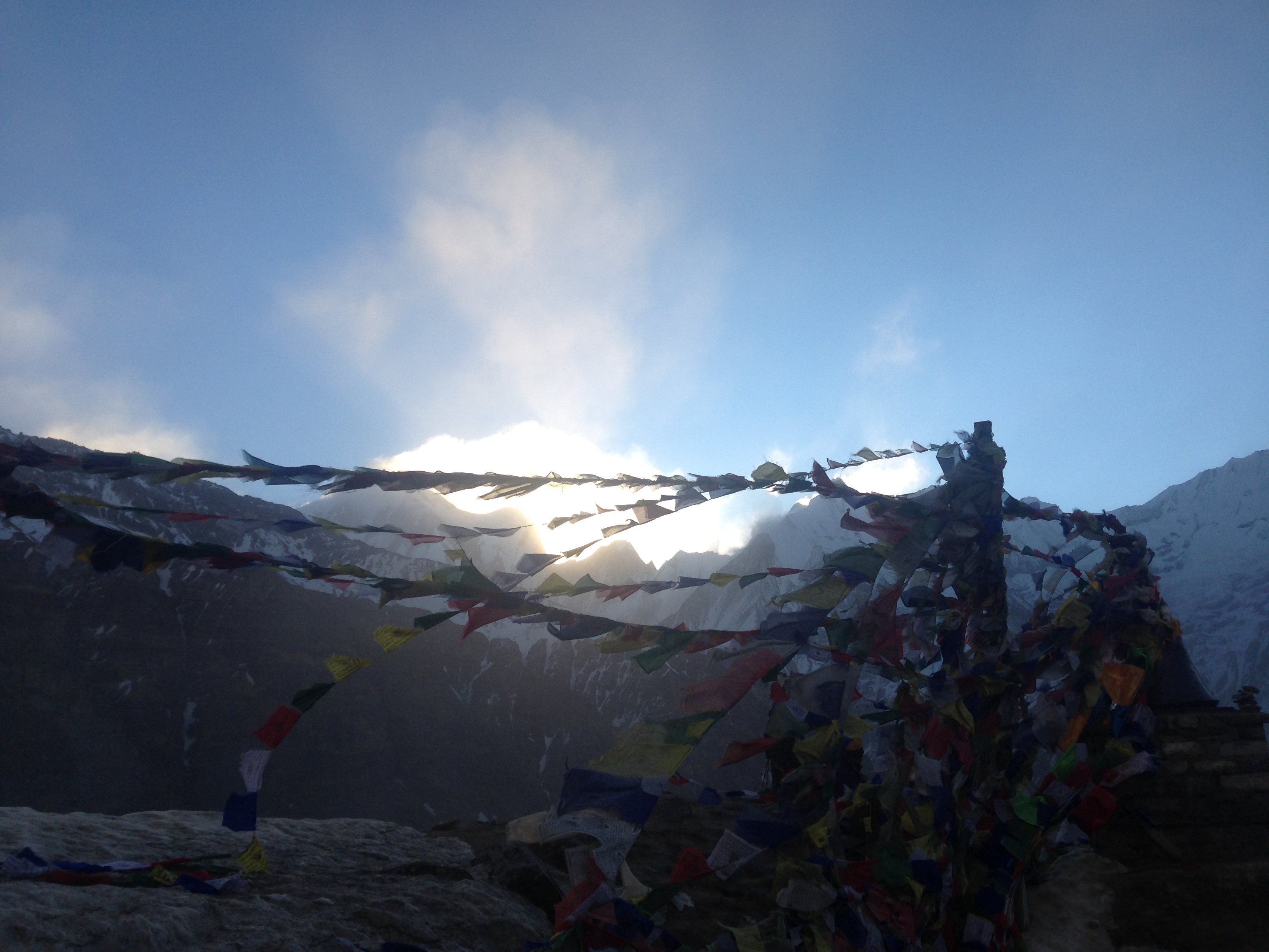 Let just say, when the morning came, the clattering metal roof tops in the wind didn’t help motivate me to get up. But thanks to Bart, we all made it up and out our cottage to see the sunrise from what is known as Annapurna Base Camp. And again, what a sight. Those mountains, the light, the moon, the sunbeams, the hostile environment… it makes you very conscious of how insignificant we humans really are. A combination of pure exquisite beauty with the realization that this is probably one of the most hostile places to be in. And that was made very apparent after breakfast when we headed down the mountain again. Here we got surprised by a massive wind and hail storm. Hail pellets the size of marbles pelting against us, bags flying, clothing flying… but luckily all safe. Thanks to Hebi and Min who knew how serious it was, and knew that we needed to get down and off that peak ASAP. A good long, slow walk got us back to Bamboo that day, where we managed to enjoy a relaxing afternoon.